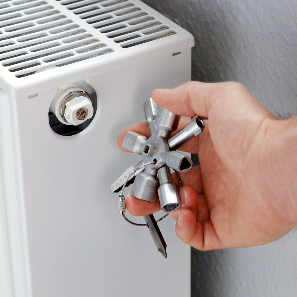 • Multifunctional key for the actuation of locking systems from the areas of facilities engineering (heating and plumbing, air conditioning, electrical technology), gas and water supply, and shut-off-systems