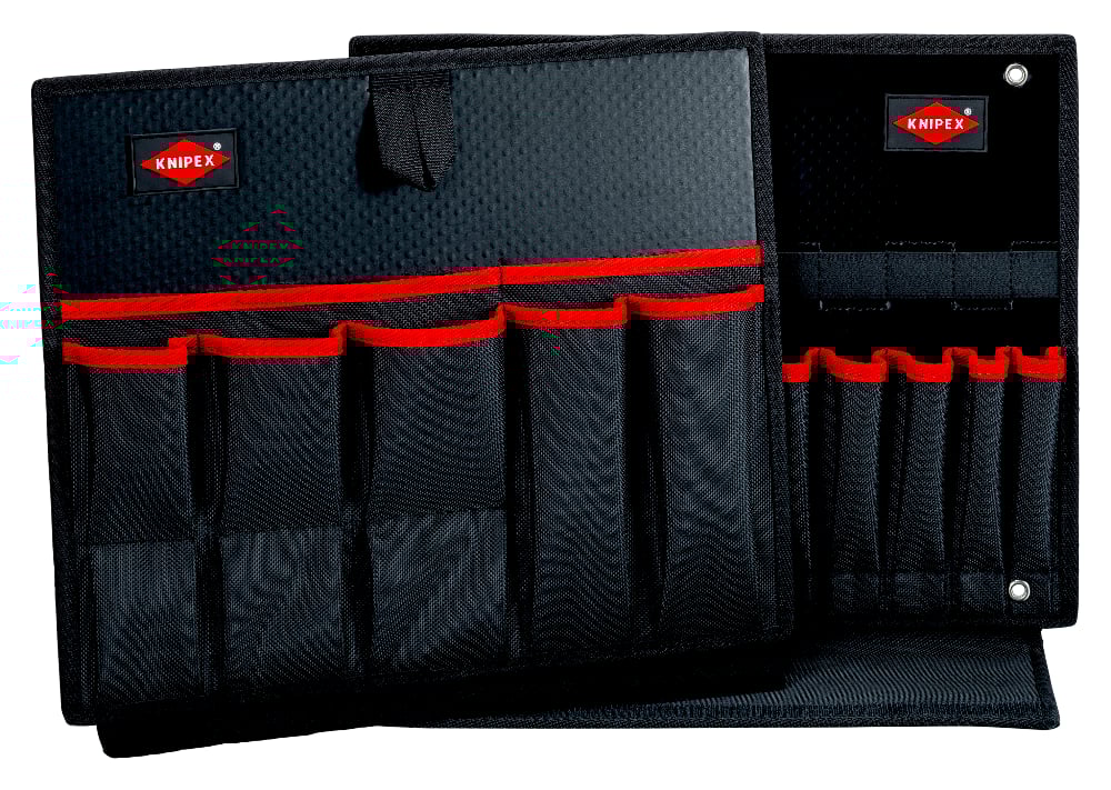 • Lower tool board (bottom section) with 7 pockets and a strap for hanging up the tool board on the top; can also be used to lift or place in the KNIPEX L-BOXX®