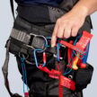 • Adapter strap can be attached directly with the cord or the carabiner to the climbing equipment or fixed points provided for this purpose, quick change of the belay from the tool bag to the tether
