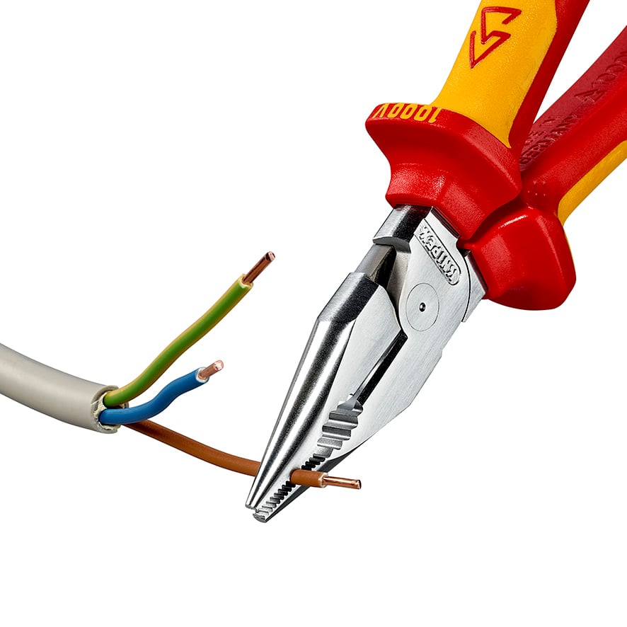 • Handy use when working in confined areas thanks to slim head design and pointed jaws (anti-twist)