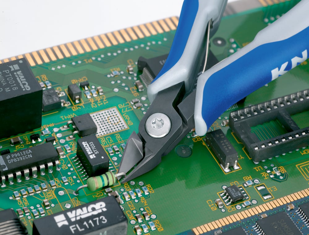 • Very precisely ground and sharp cutting edges with very small bevels for exact cutting on delicate electronic components; also available without bevel for flush cutting