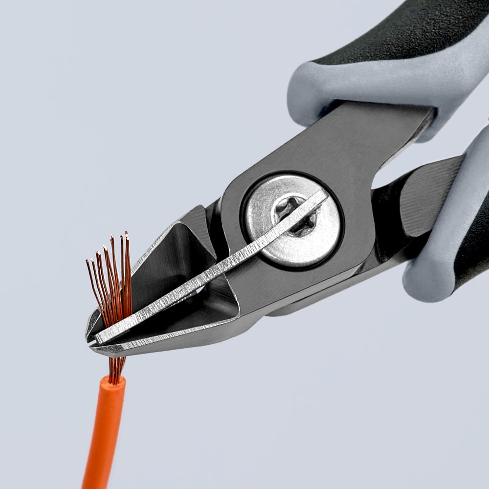 • Very precisely ground and sharp cutting edges with very small bevels for exact cutting on delicate electronic components; also available without bevel for flush cutting