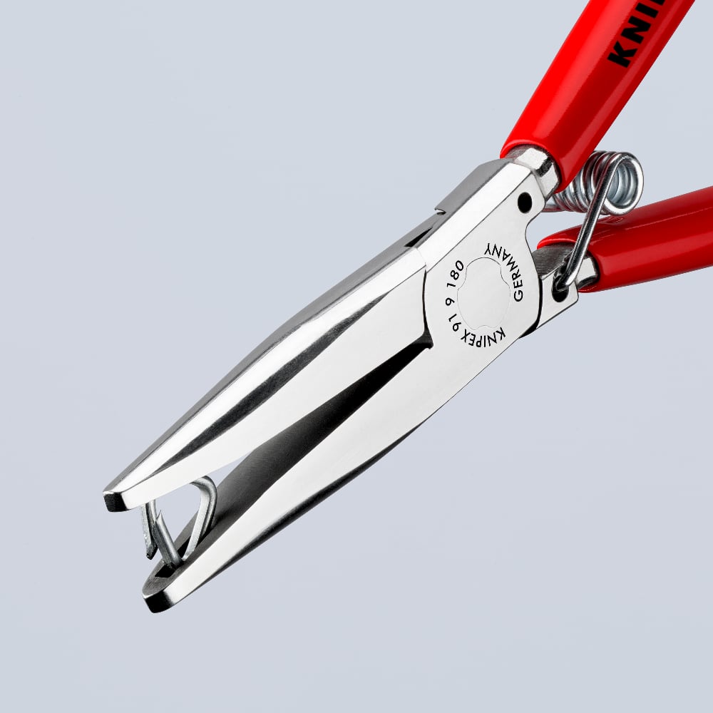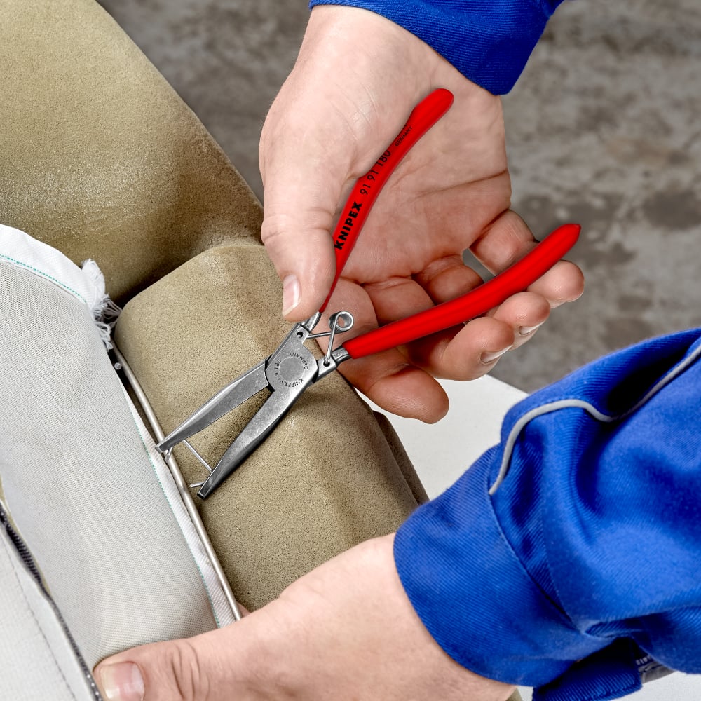 • Easy positioning of the upholstery clips: a closing spring holds the pliers closed, the clip can be securely positioned and pressed