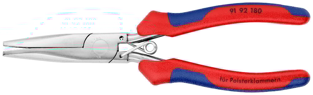 • Easy positioning of the upholstery clips: a closing spring holds the pliers closed, the clip can be securely positioned and pressed
