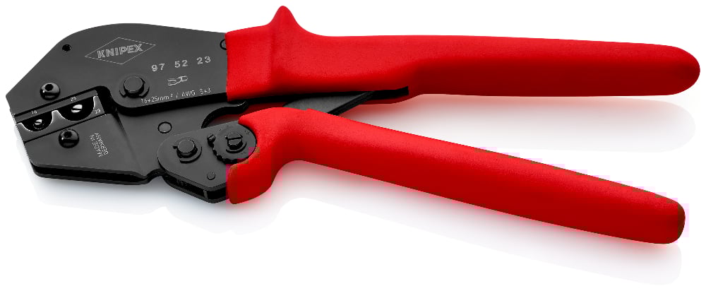 • Two-hand operation for easy crimping of large conductor diameters