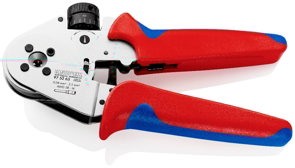 • The range of applications of the crimping pliers can be extended by exchanging the contact holders of various contact manufacturers